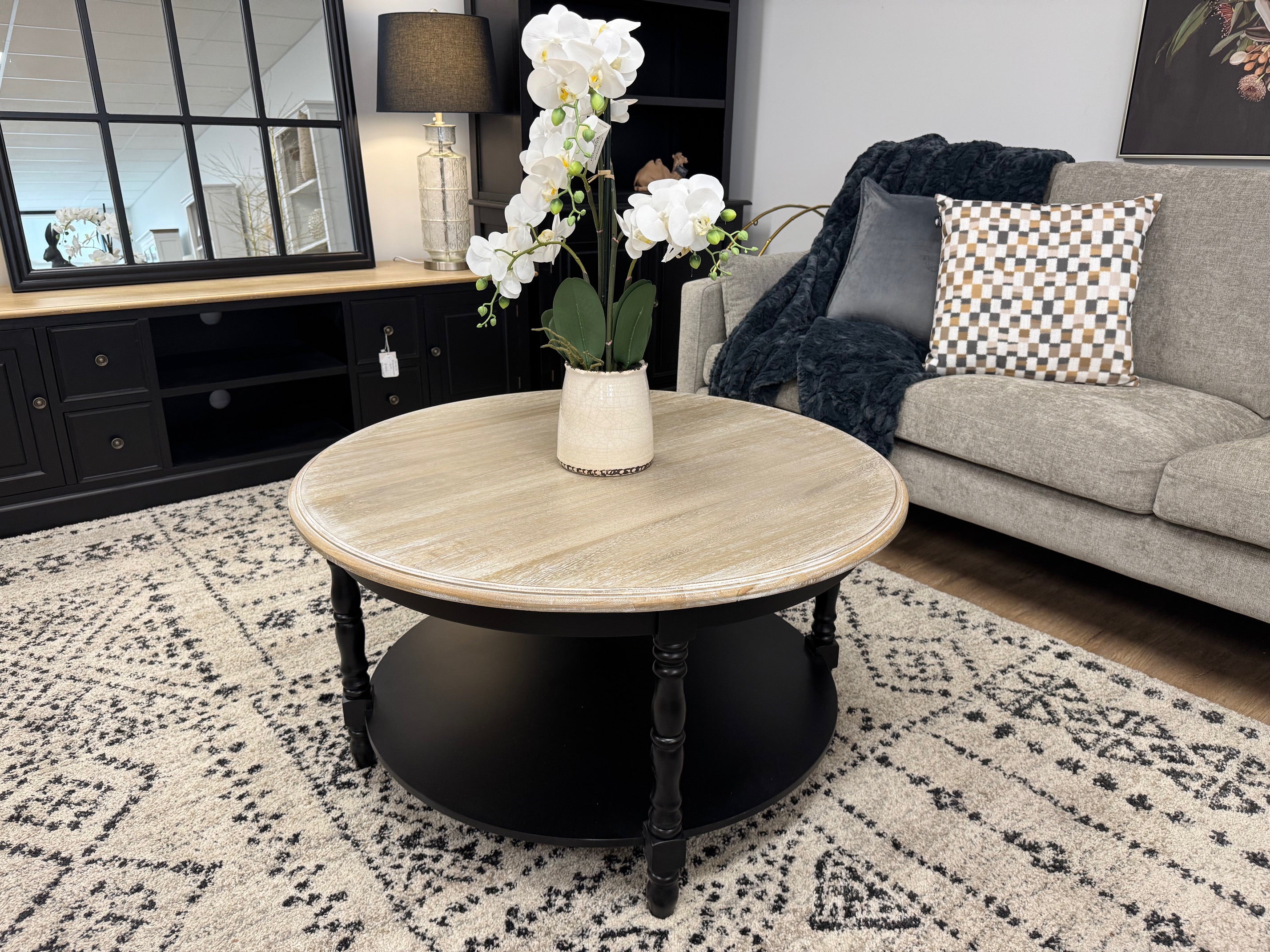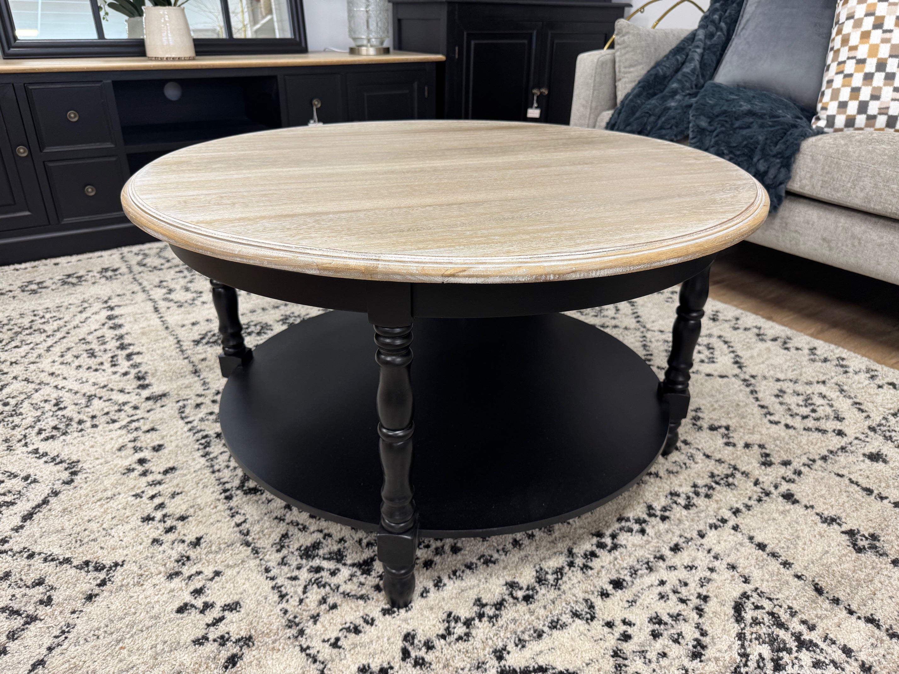 Made in a classic Hamptons style, this coffee table and will add warmth and elegance to any living room. Featuring a lower storage shelf, an antiqued timber veneer table top with black legs. Add this coffee table with your existing setting, or choose some new complimenting furniture from our store.